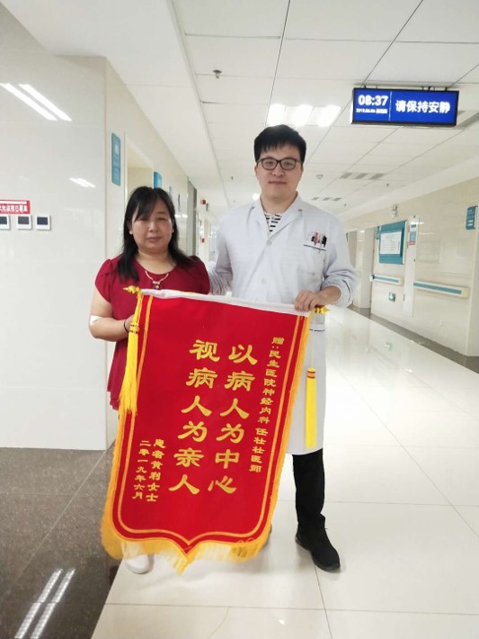 在任壮壮同学择业期间,多家医院的辅助科室都看好他,甚至有医院为其增设岗位,但他一直铭记自己成为一名临床医生的梦想,最终来到阜阳市民生医院(安徽省儿童医院阜阳医院)神经内科工作。在工作中,他一直秉承做关心患者的好医生的初衷,碰到一些超越医疗范畴无法治愈的患者时,能够真正做到“经常去帮助,总是去安慰”,关心患者如同关心自己的亲人,今天第一次收到患者送来的锦旗,上书“以病人为中心,视病人为亲人”。母校师生对他表示祝贺,为他感到骄傲!(文/图:张媛媛)